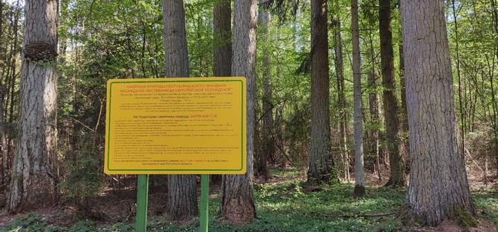 Памятники природы обозначаются на местности предупредительными и информационными знаками. Знаки устанавливаются с целью информирования населения о месторасположении памятников, об основных характеристиках объекта и режиме его охраны. Информация может быть представлена как на официальных аншлагах желтого цвета (принятая окраска для информационных стендов ООПТ) в соответствии с (СТБ 2410-2015), так и с элементами колорита, созданного местными художниками, резчиками по дереву и др.